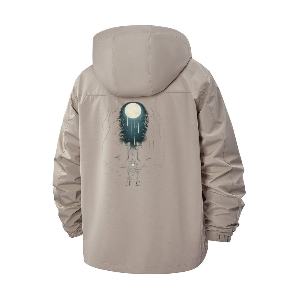 Mystical Moonlit Forest Unisex Full-Zip Printed Waterproof Hooded Windbreaker