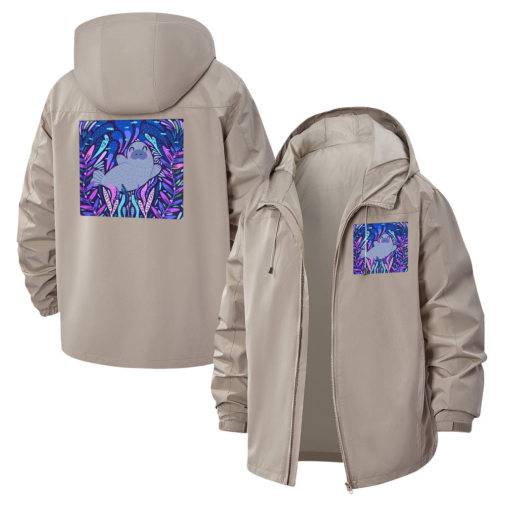 Mystical Sloth Jungle Unisex Full-Zip Printed Waterproof Hooded Windbreaker