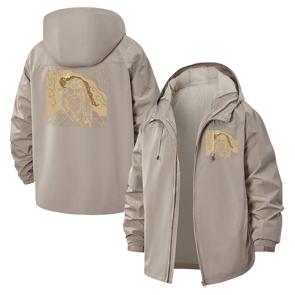 Mystical Woman Illustration Unisex Full-Zip Printed Waterproof Hooded Windbreaker