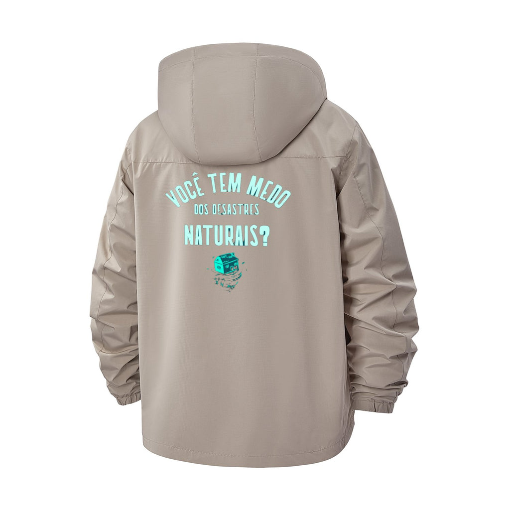Natural Disaster Awareness Unisex Full-Zip Printed Waterproof Hooded Windbreaker