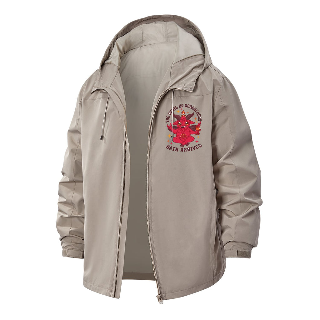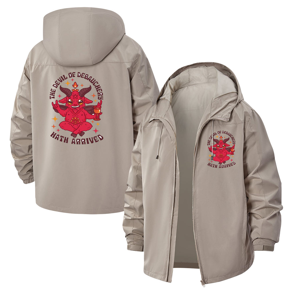 Occult Meditating Demon Unisex Full-Zip Printed Waterproof Hooded Windbreaker