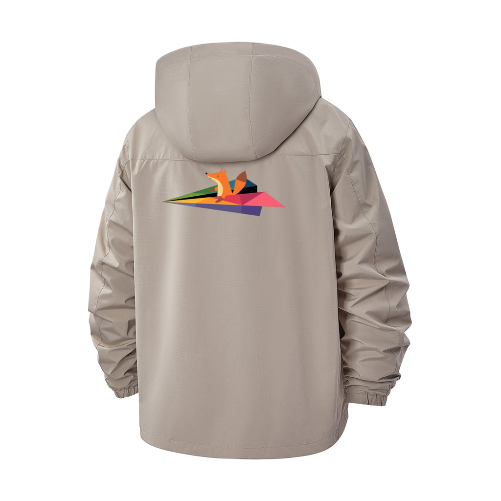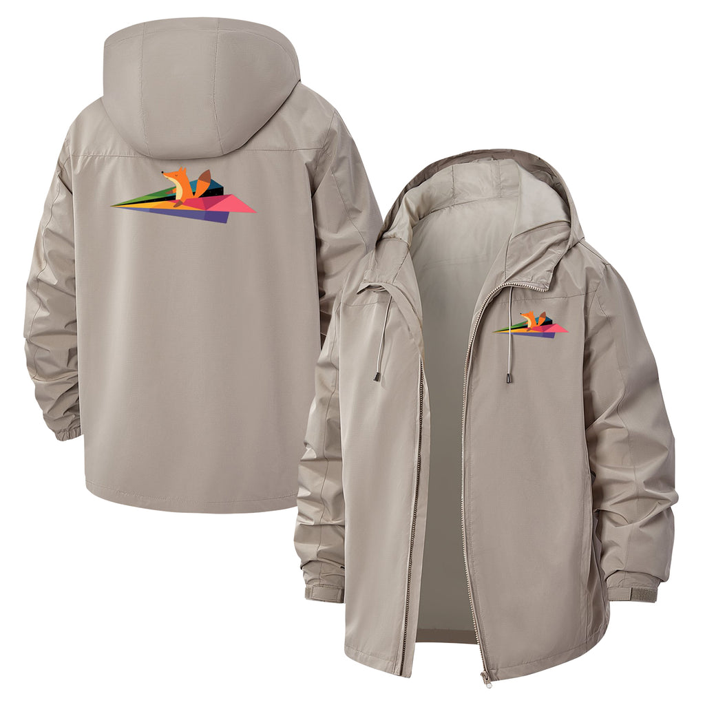Origami Fox and Paper Airplane Unisex Full-Zip Printed Waterproof Hooded Windbreaker