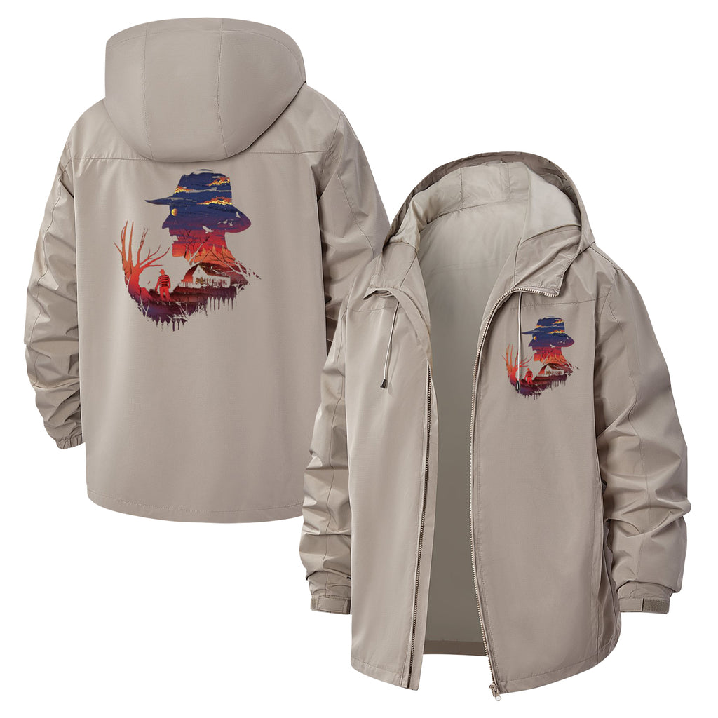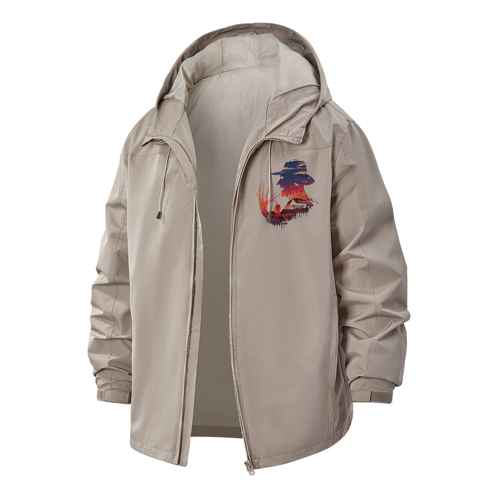 Outdoor Wilderness Scene Unisex Full-Zip Printed Waterproof Hooded Windbreaker