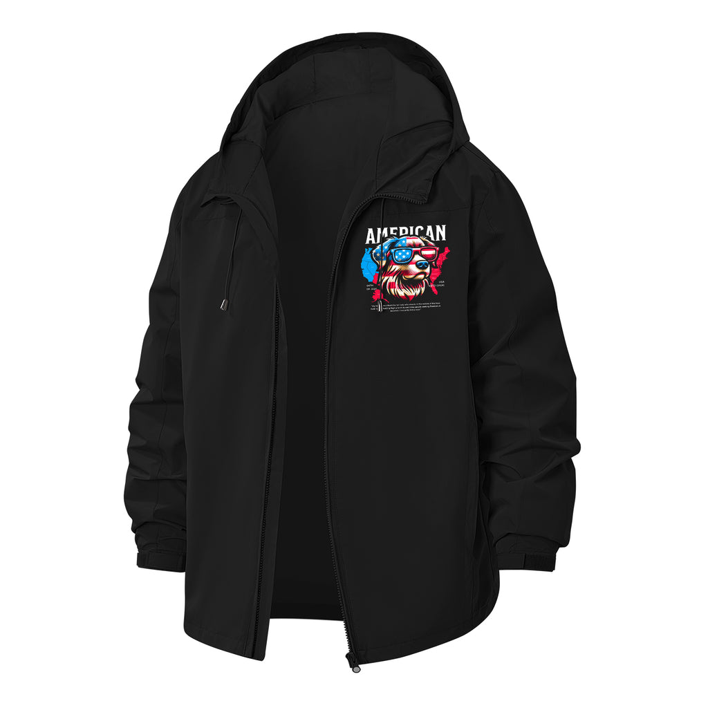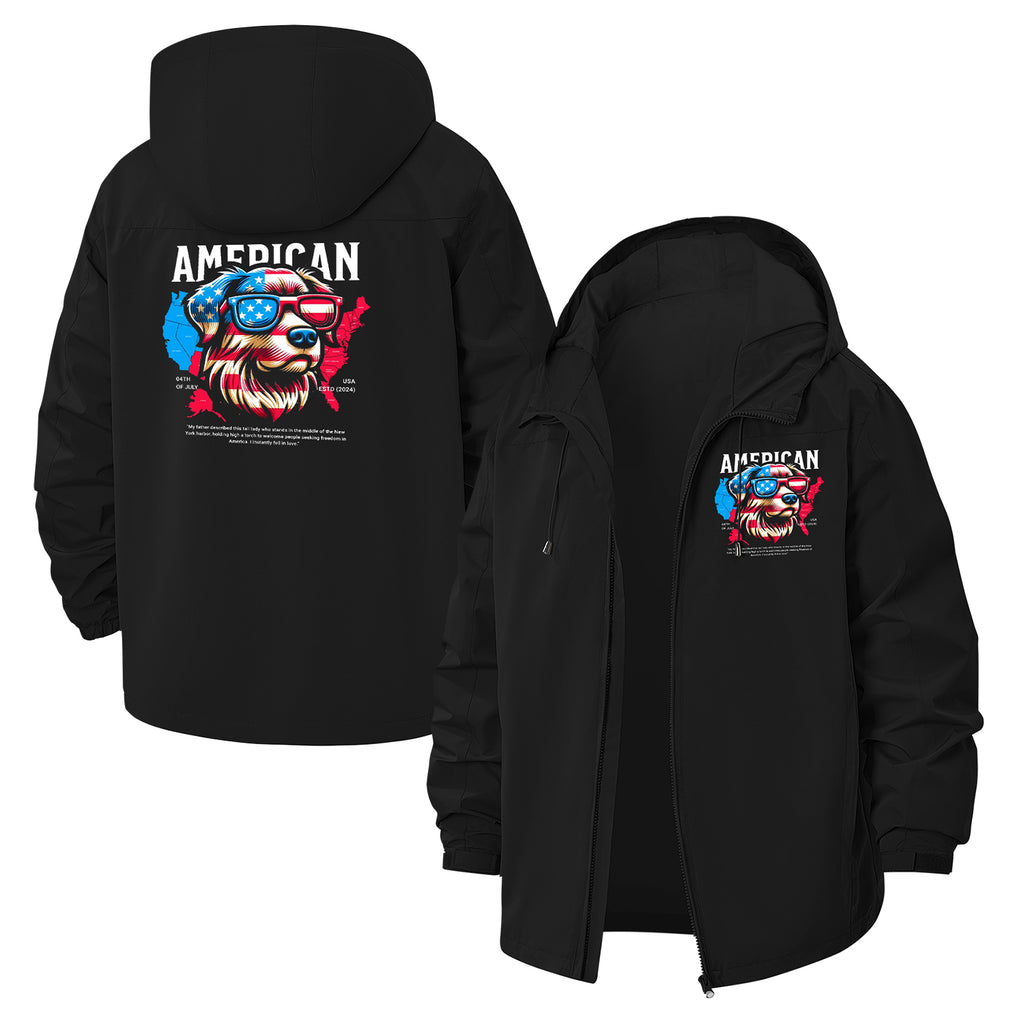 Patriotic Dog Unisex Full-Zip Printed Waterproof Hooded Windbreaker