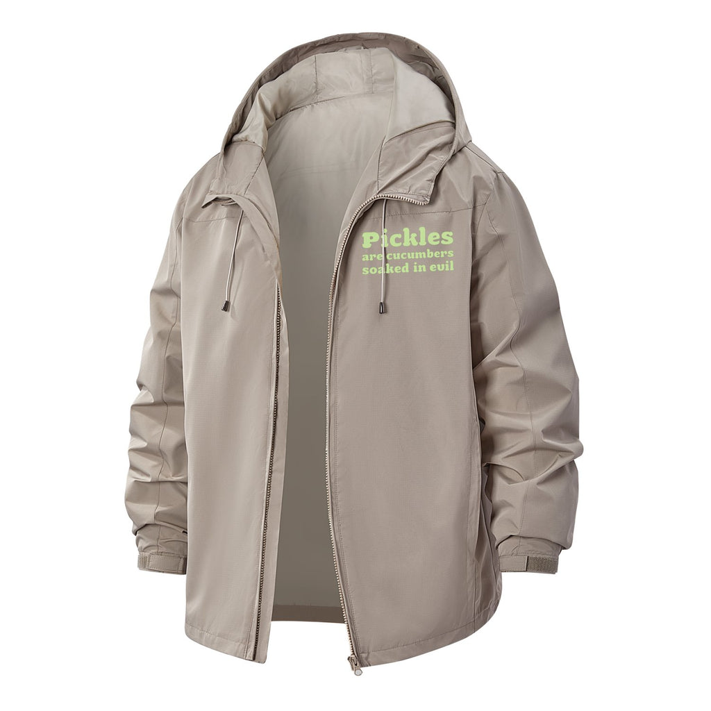 Pickles Humor Unisex Full-Zip Printed Waterproof Hooded Windbreaker