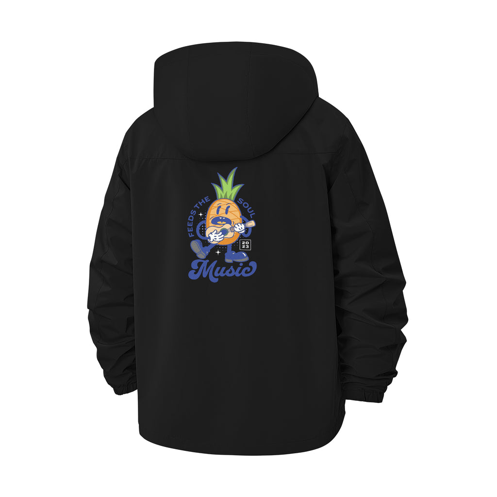 Pineapple Music Cartoon Unisex Full-Zip Printed Waterproof Hooded Windbreaker