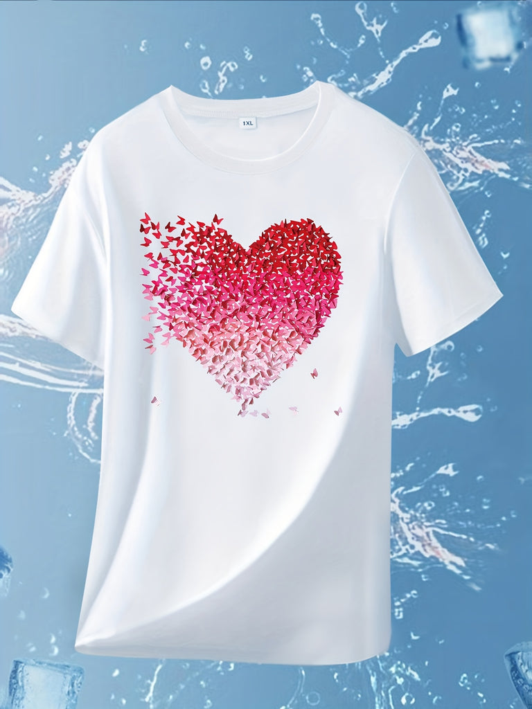Pink Shirt Womens Heart Made Of Falling Red And Pink Petals T Shirt, Shirt For Women, Cute T Shirts For Women