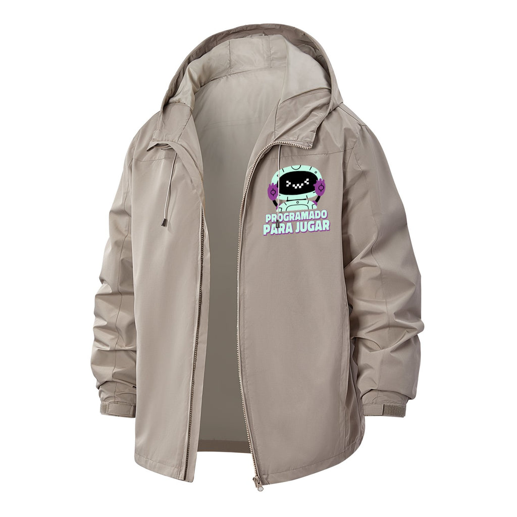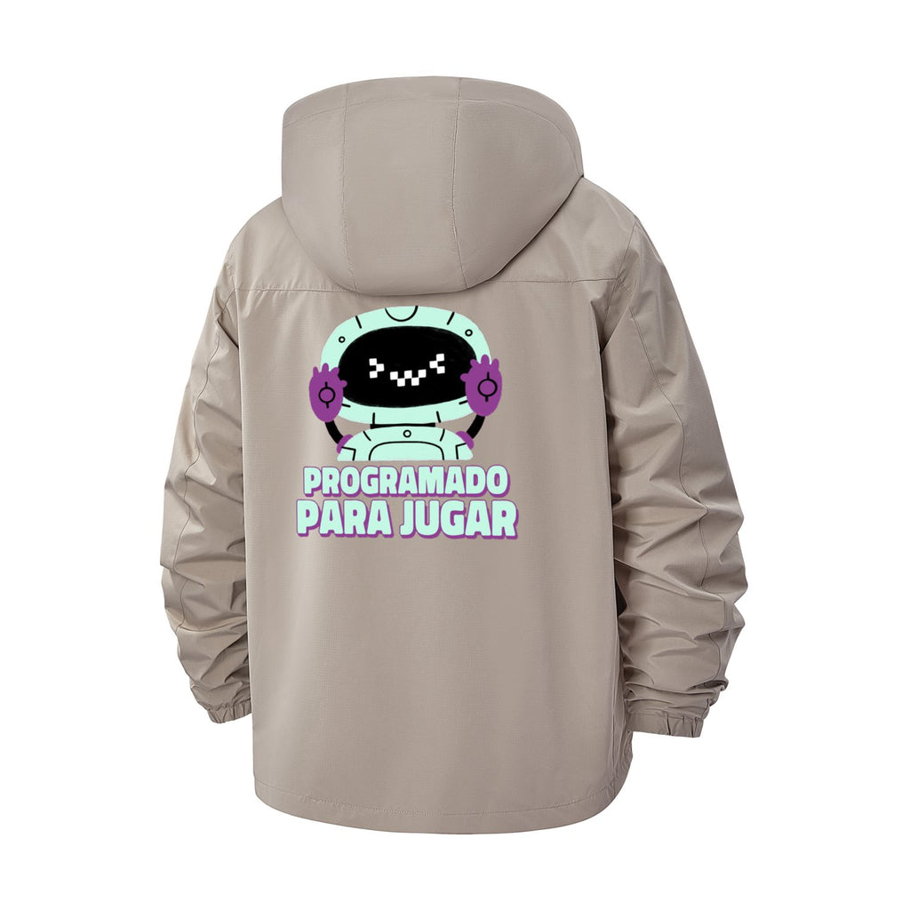 Pixel Robot Gamer Unisex Full-Zip Printed Waterproof Hooded Windbreaker