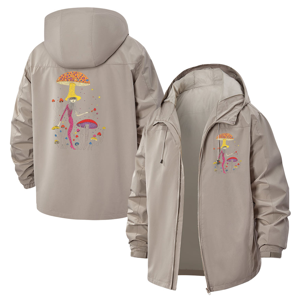 Psychedelic Mushroom Art Unisex Full-Zip Printed Waterproof Hooded Windbreaker