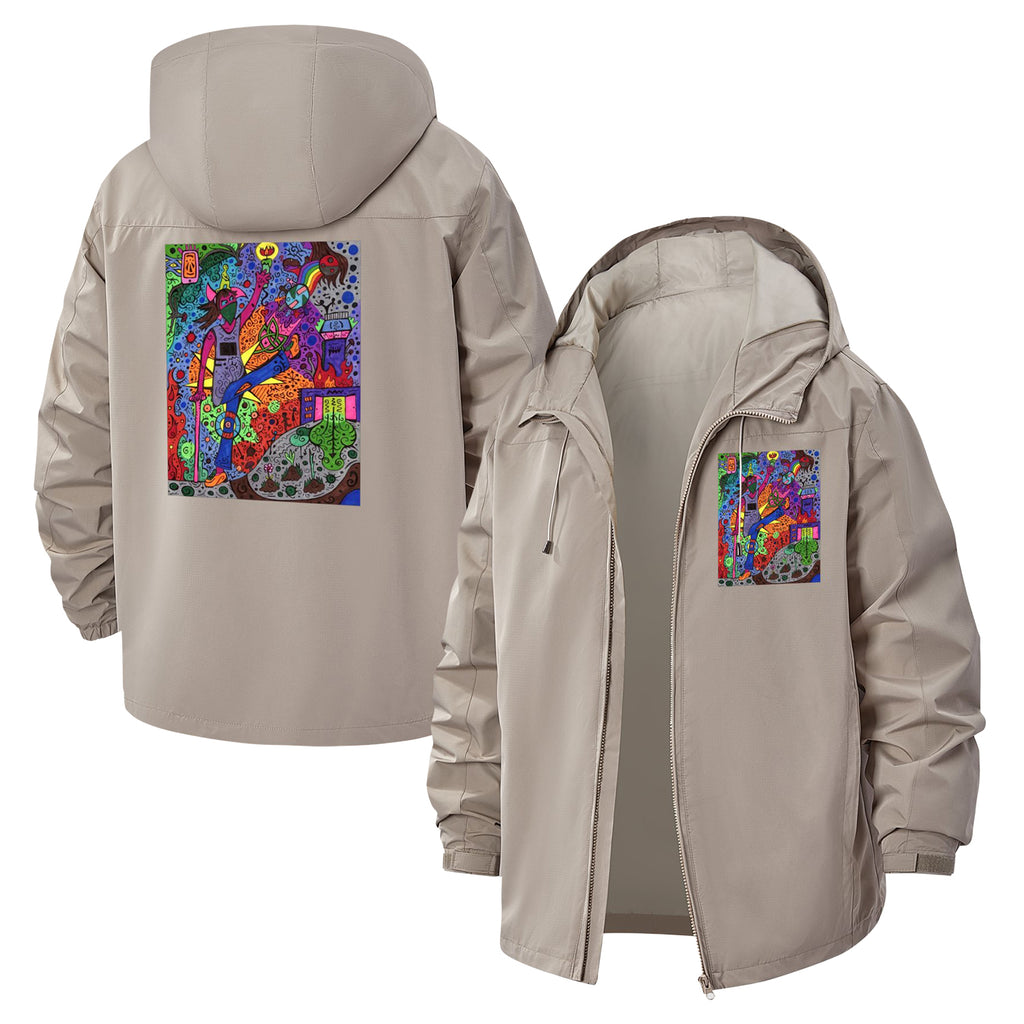 Psychedelic Painter Unisex Full-Zip Printed Waterproof Hooded Windbreaker