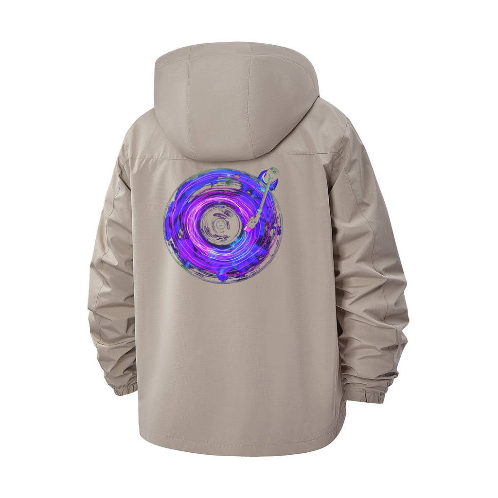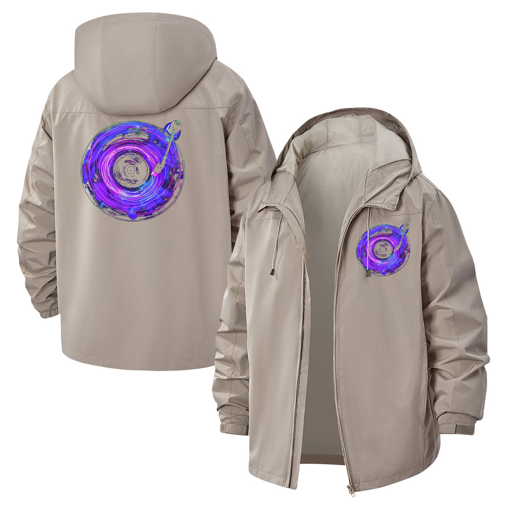 Psychedelic Vinyl Unisex Full-Zip Printed Waterproof Hooded Windbreaker