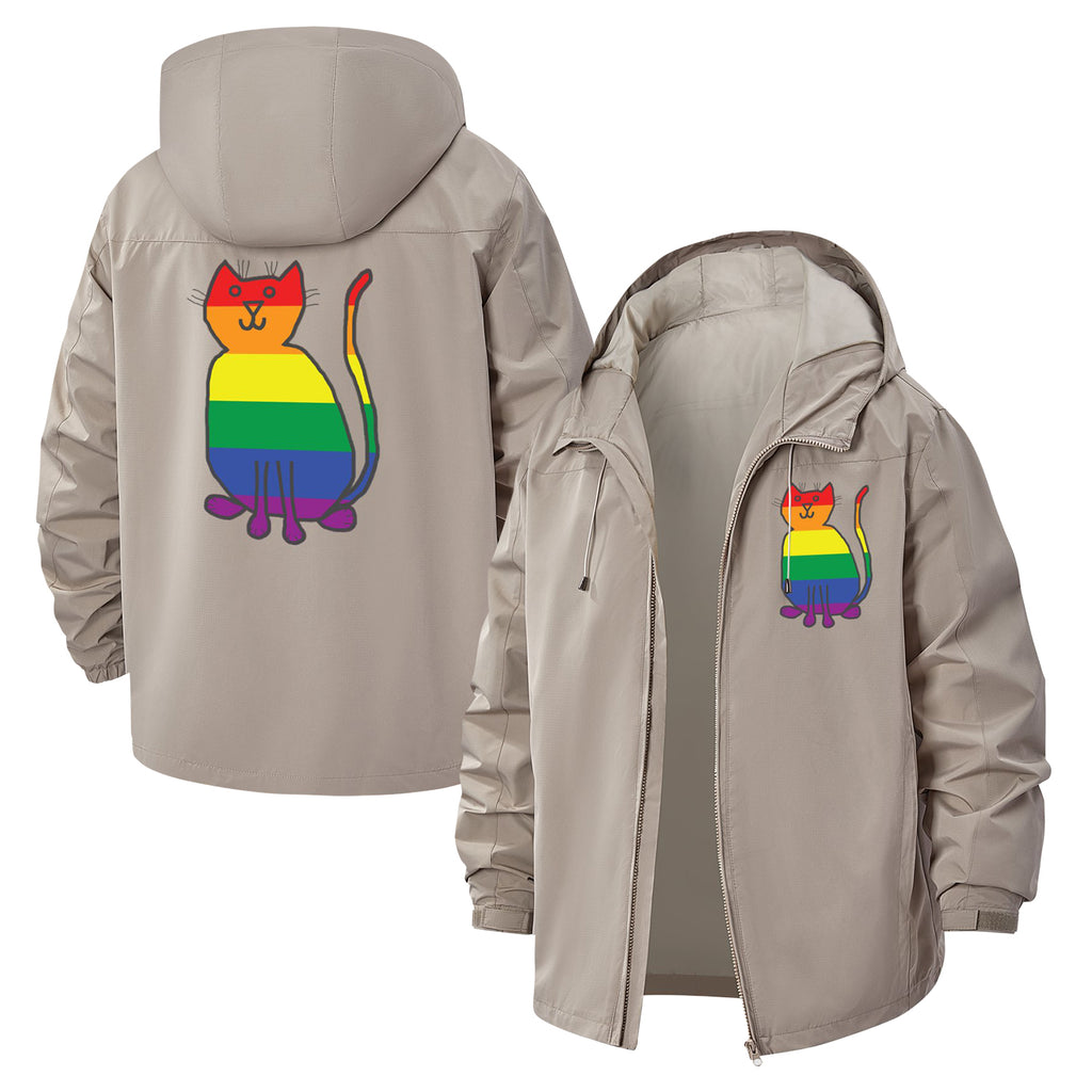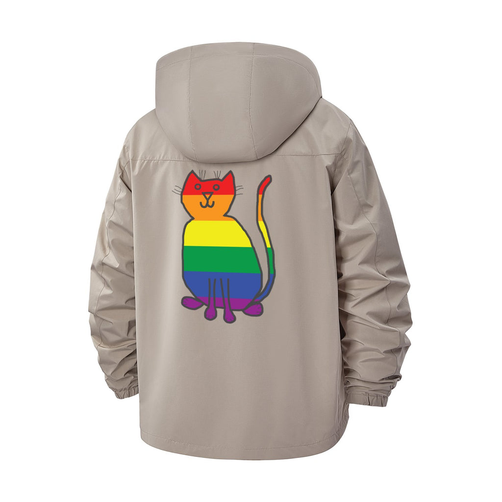 Rainbow Cat Unisex Full-Zip Printed Waterproof Hooded Windbreaker