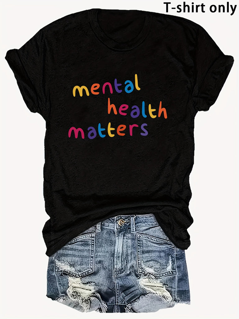 Red T Shirt Women Colorful Positive Message With Friendly Playful Letters Mental Health Matters, Cute Graphic Tees For Women, Cotton T Shirts For Women