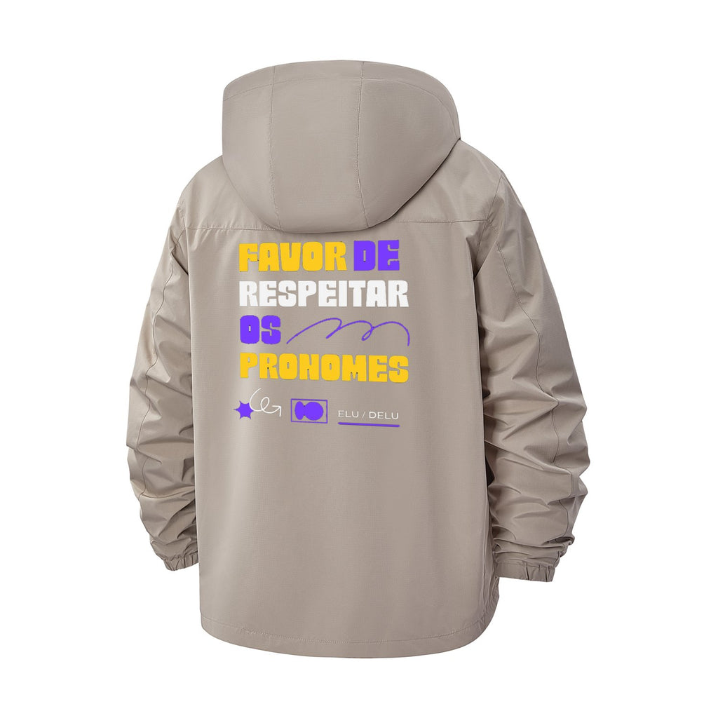 Respect Pronouns Unisex Full-Zip Printed Waterproof Hooded Windbreaker