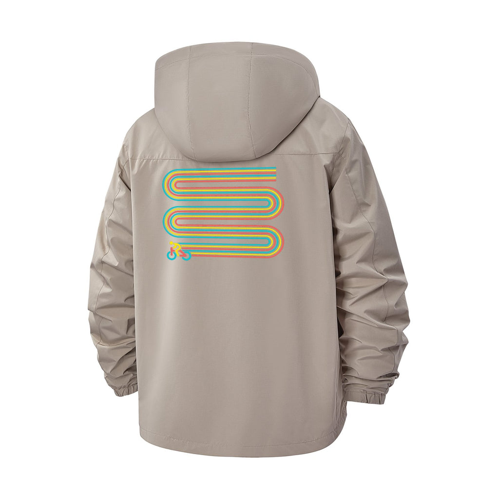 Retro Bicycle Path Unisex Full-Zip Printed Waterproof Hooded Windbreaker