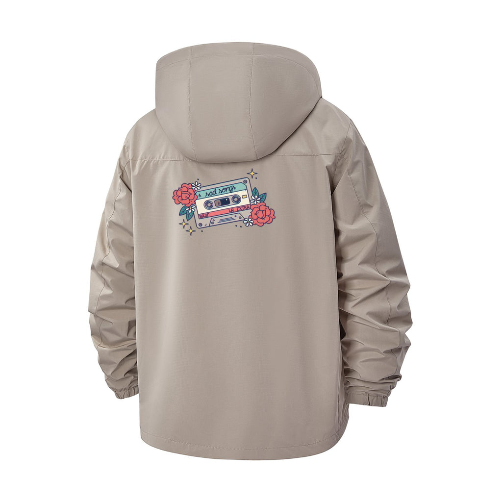 Retro Cassette Floral Unisex Full-Zip Printed Waterproof Hooded Windbreaker