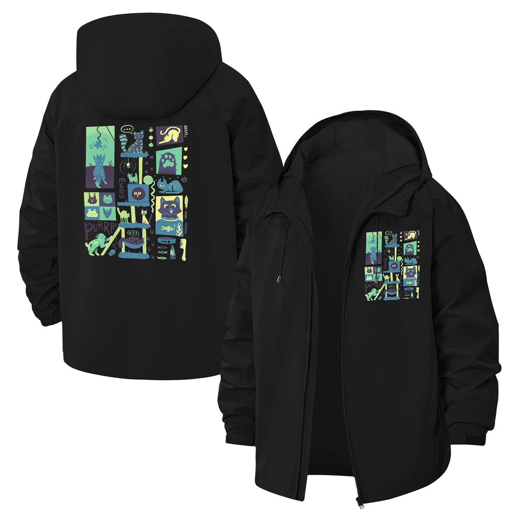 Retro Gaming Icons Unisex Full-Zip Printed Waterproof Hooded Windbreaker