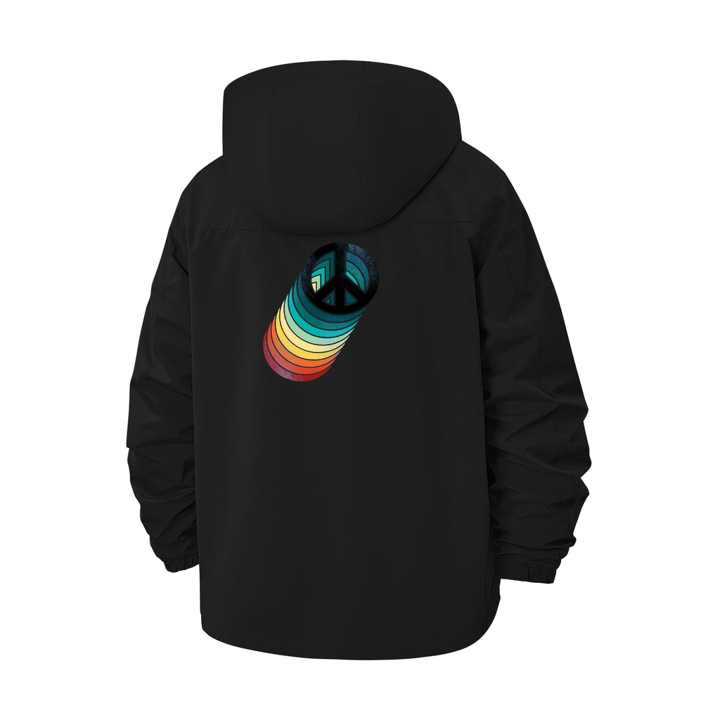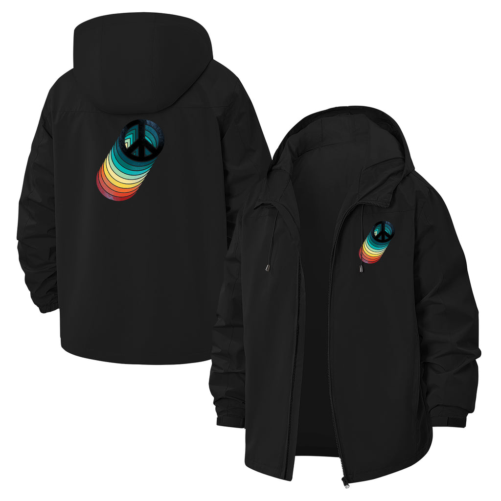 Retro Rainbow Geometric Unisex Full-Zip Printed Waterproof Hooded Windbreaker