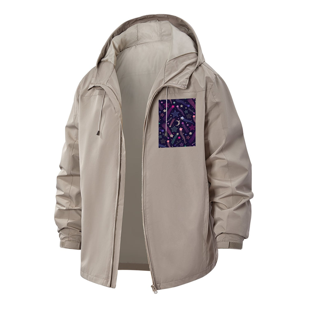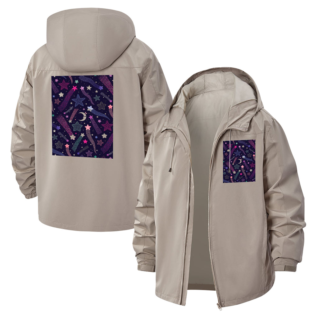 Retro Star Pattern Unisex Full-Zip Printed Waterproof Hooded Windbreaker