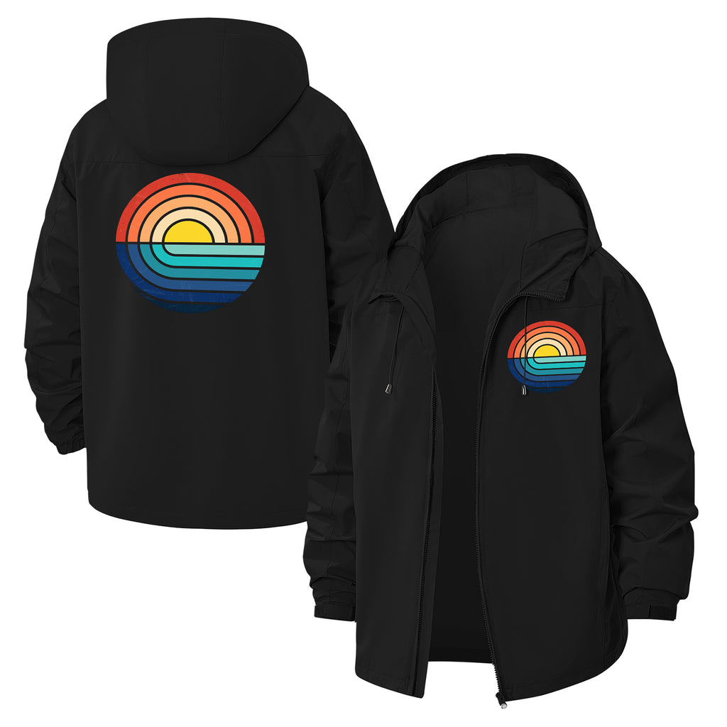 Retro Sunset Unisex Full-Zip Printed Waterproof Hooded Windbreaker