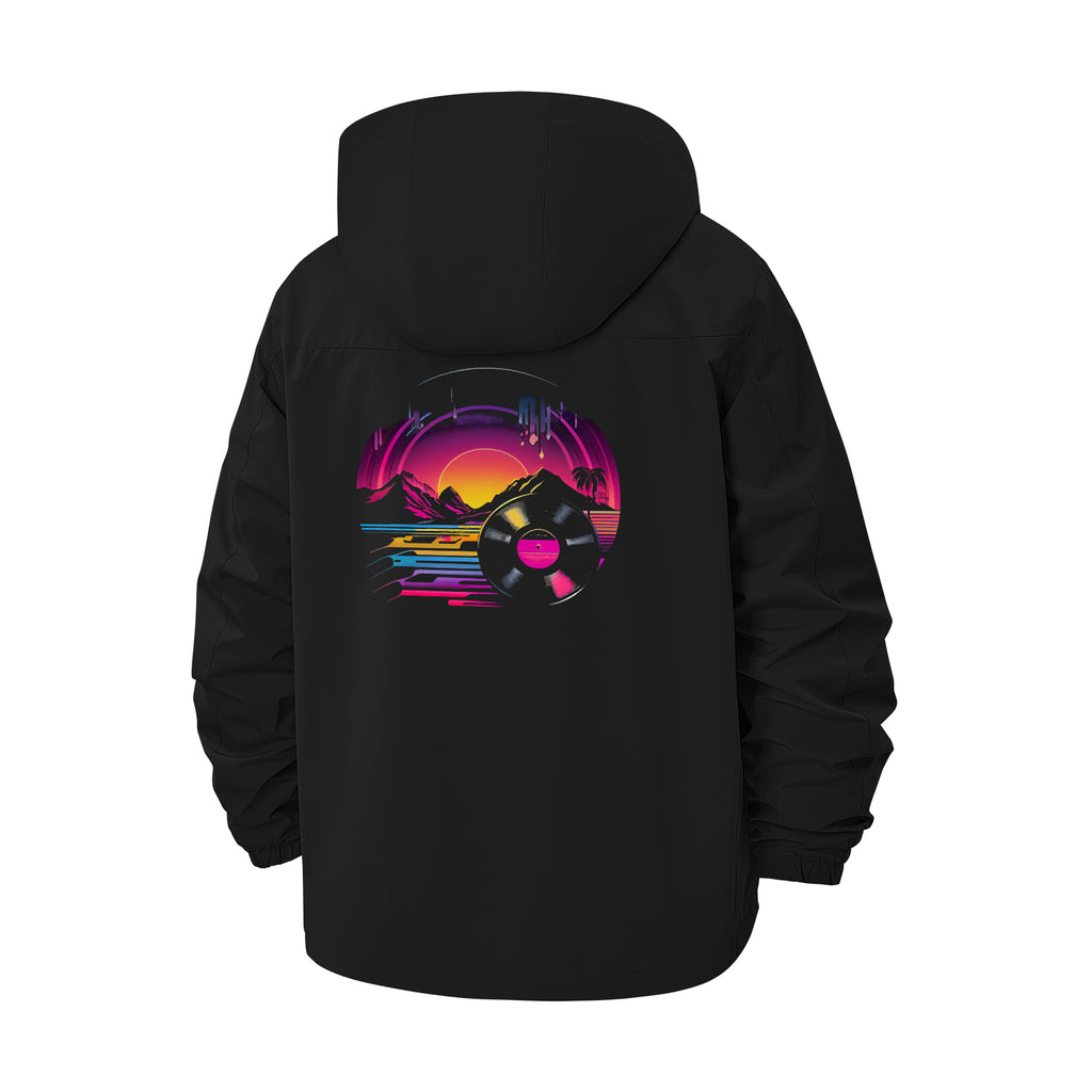Retro Sunset Vinyl Unisex Full-Zip Printed Waterproof Hooded Windbreaker