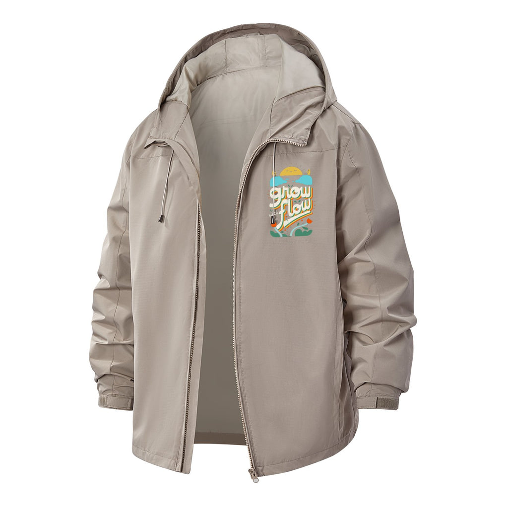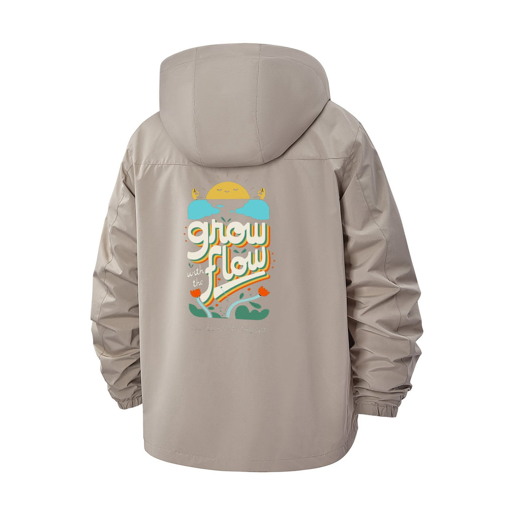 Retro Sunshine Grow Flow Unisex Full-Zip Printed Waterproof Hooded Windbreaker