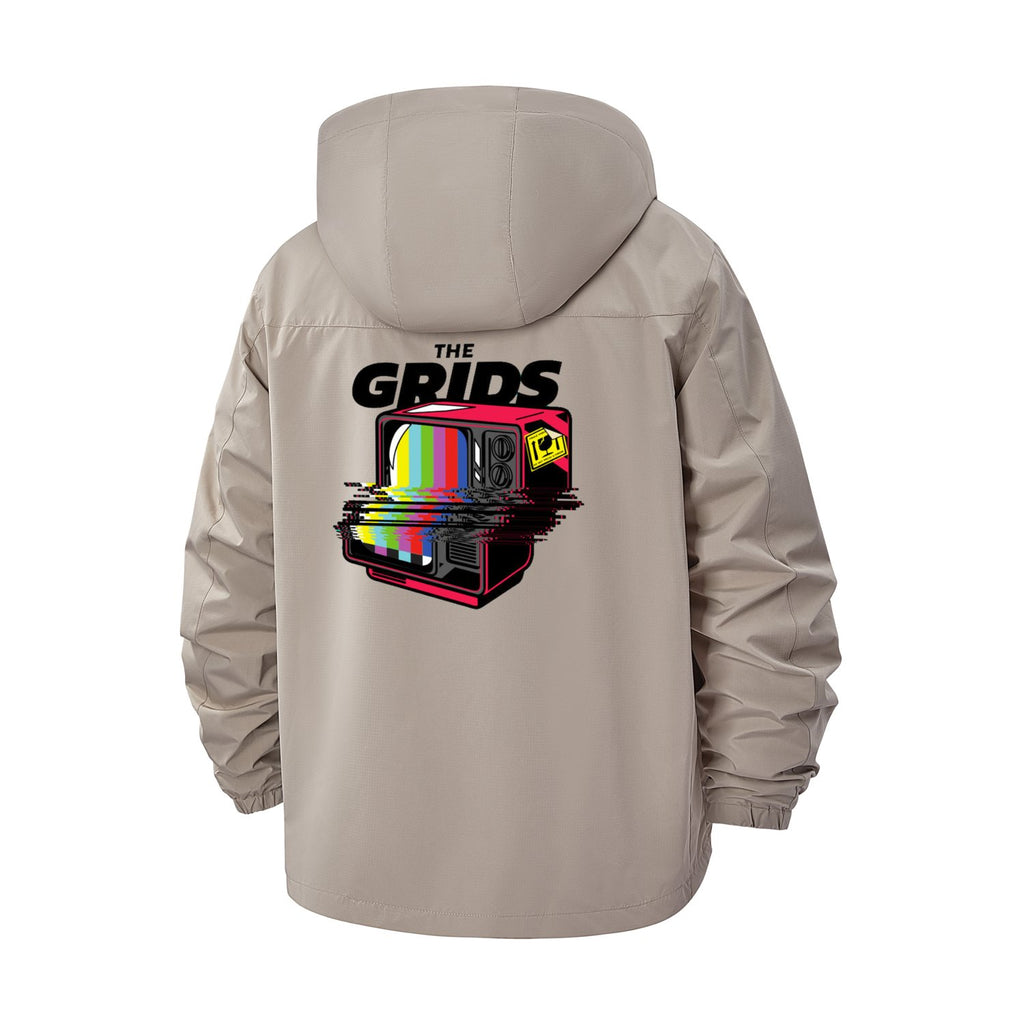 Retro TV Glitch Unisex Full-Zip Printed Waterproof Hooded Windbreaker