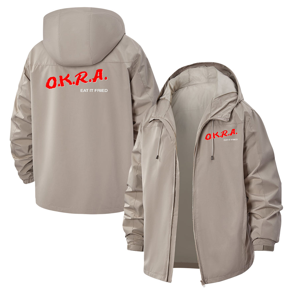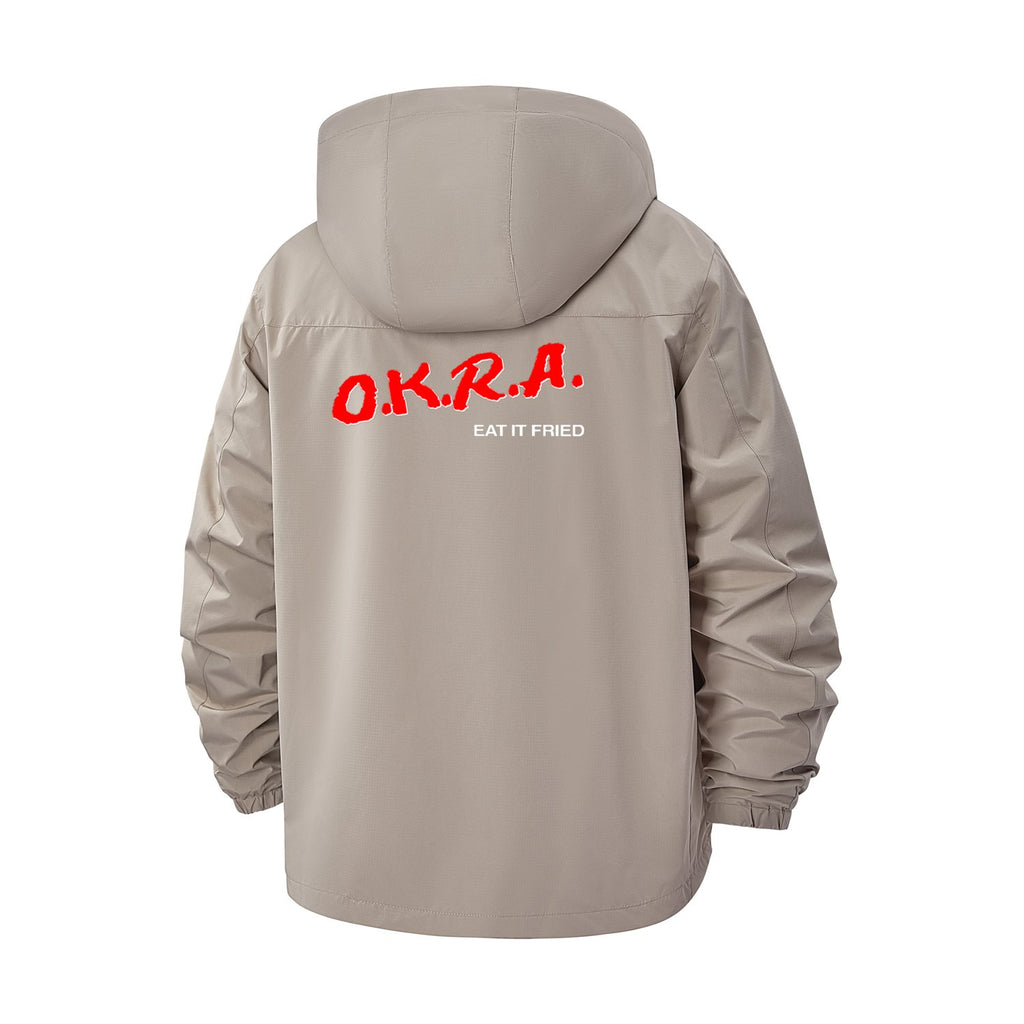 Retro Typography Unisex Full-Zip Printed Waterproof Hooded Windbreaker
