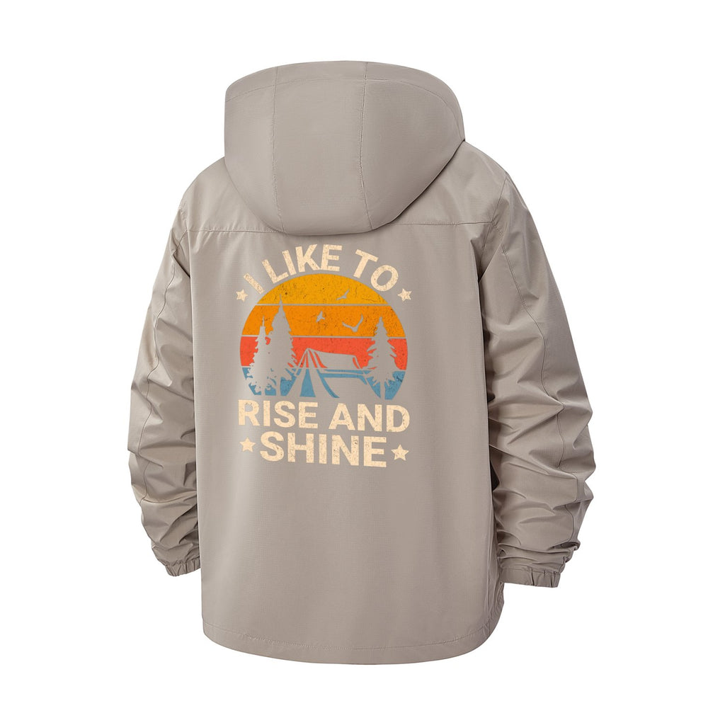 Rise and Shine Cabin Unisex Full-Zip Printed Waterproof Hooded Windbreaker