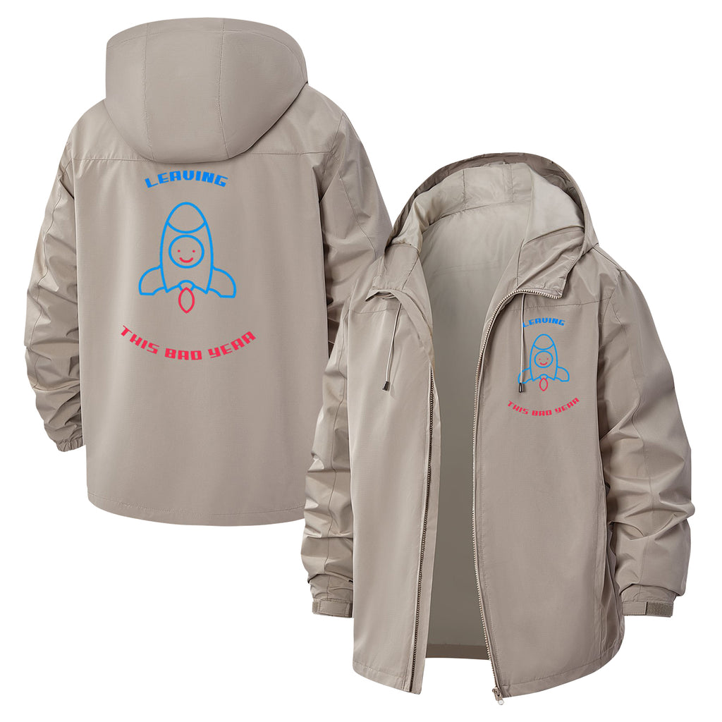 Rocket Leaving This Bad Year Unisex Full-Zip Printed Waterproof Hooded Windbreaker