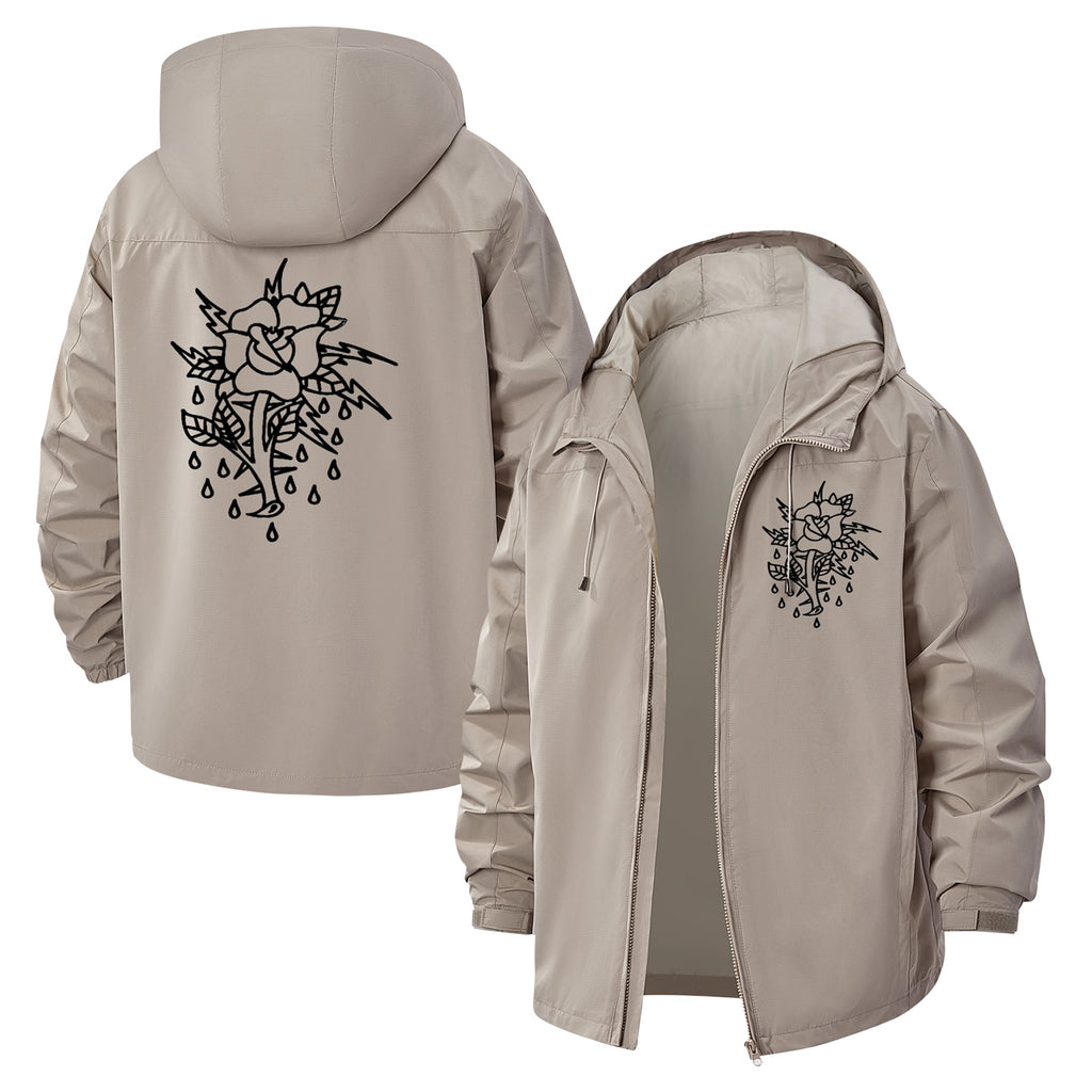 Rose and Thorns Unisex Full-Zip Printed Waterproof Hooded Windbreaker