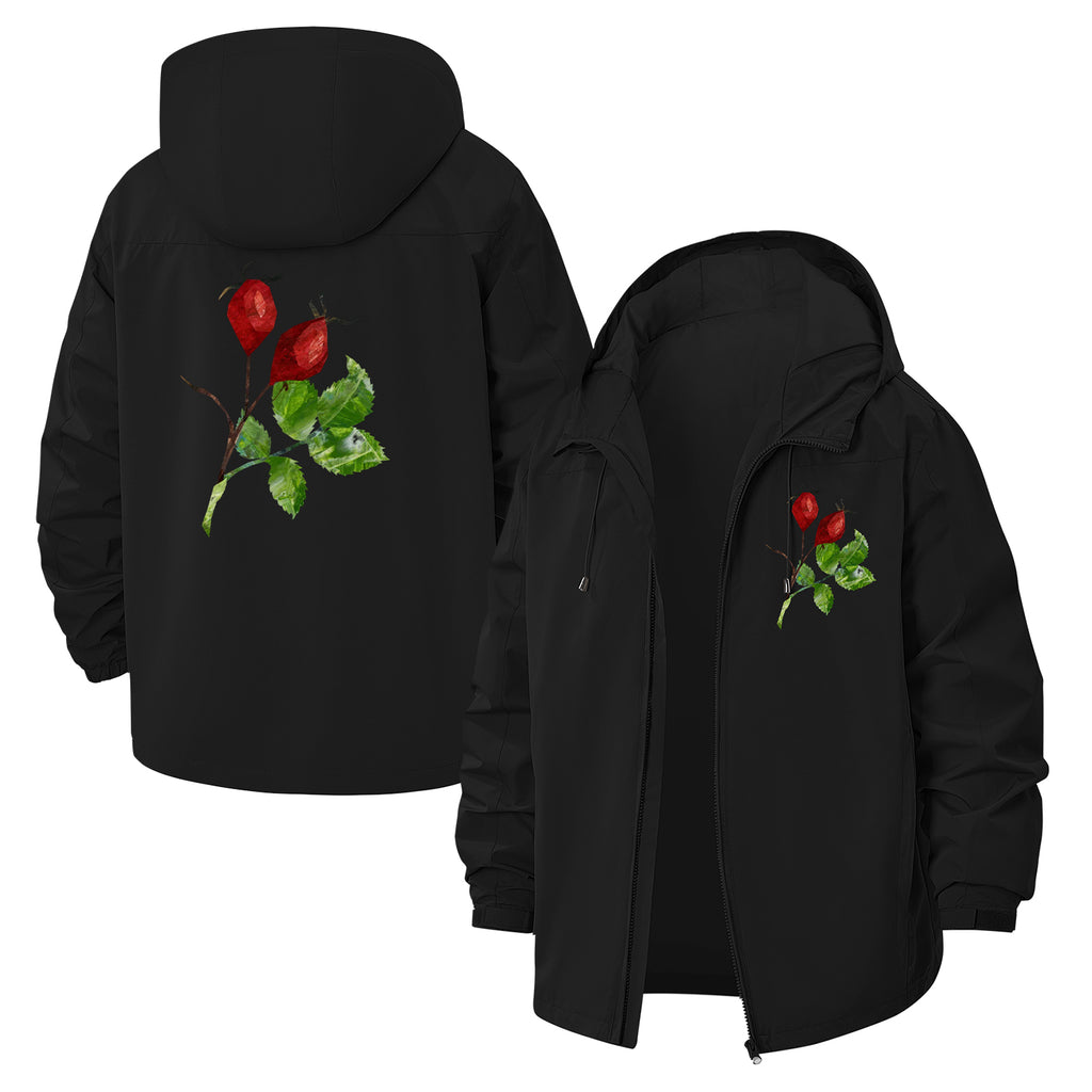 Rose Botanical Unisex Full-Zip Printed Waterproof Hooded Windbreaker