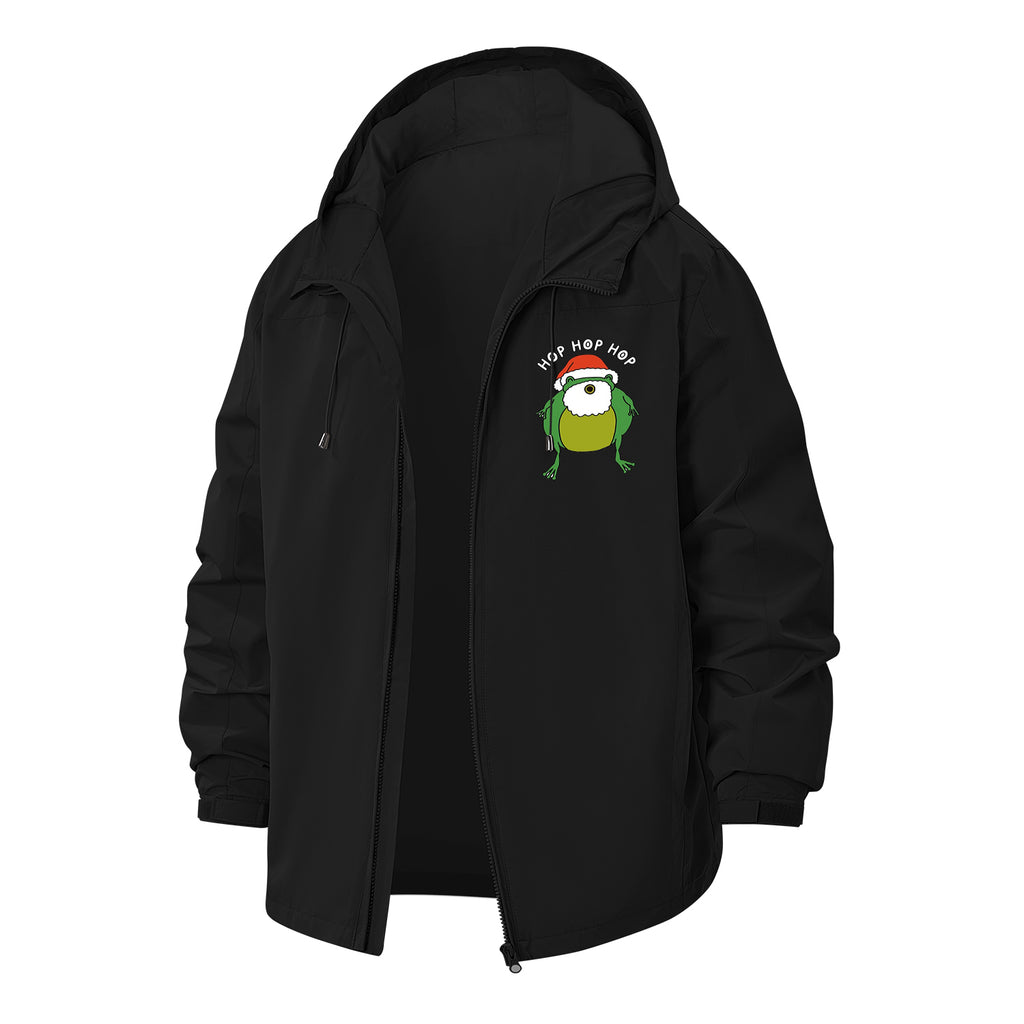 Santa Frog Unisex Full-Zip Printed Waterproof Hooded Windbreaker