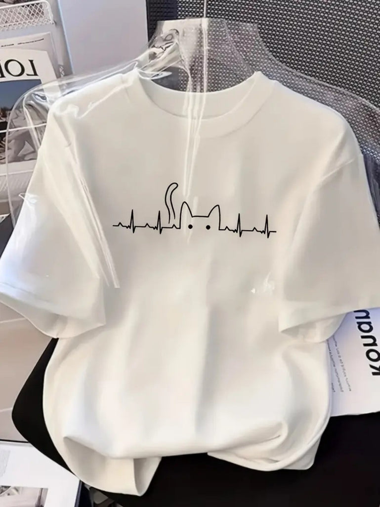 Shirt For Women Heartbeat Line Featuring Rabbit Silhouette White T Shirt, Vintage Shirts Women, Funny Shirts For Women