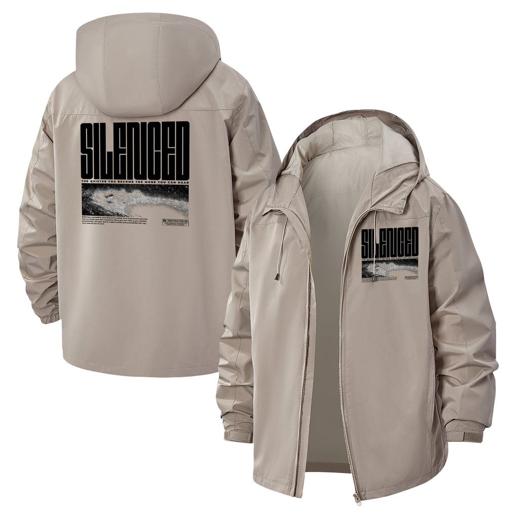 Silenced Typographic Unisex Full-Zip Printed Waterproof Hooded Windbreaker