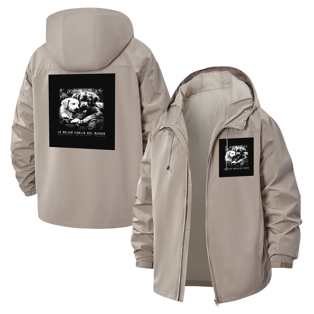 Sleeping Dog Art Unisex Full-Zip Printed Waterproof Hooded Windbreaker