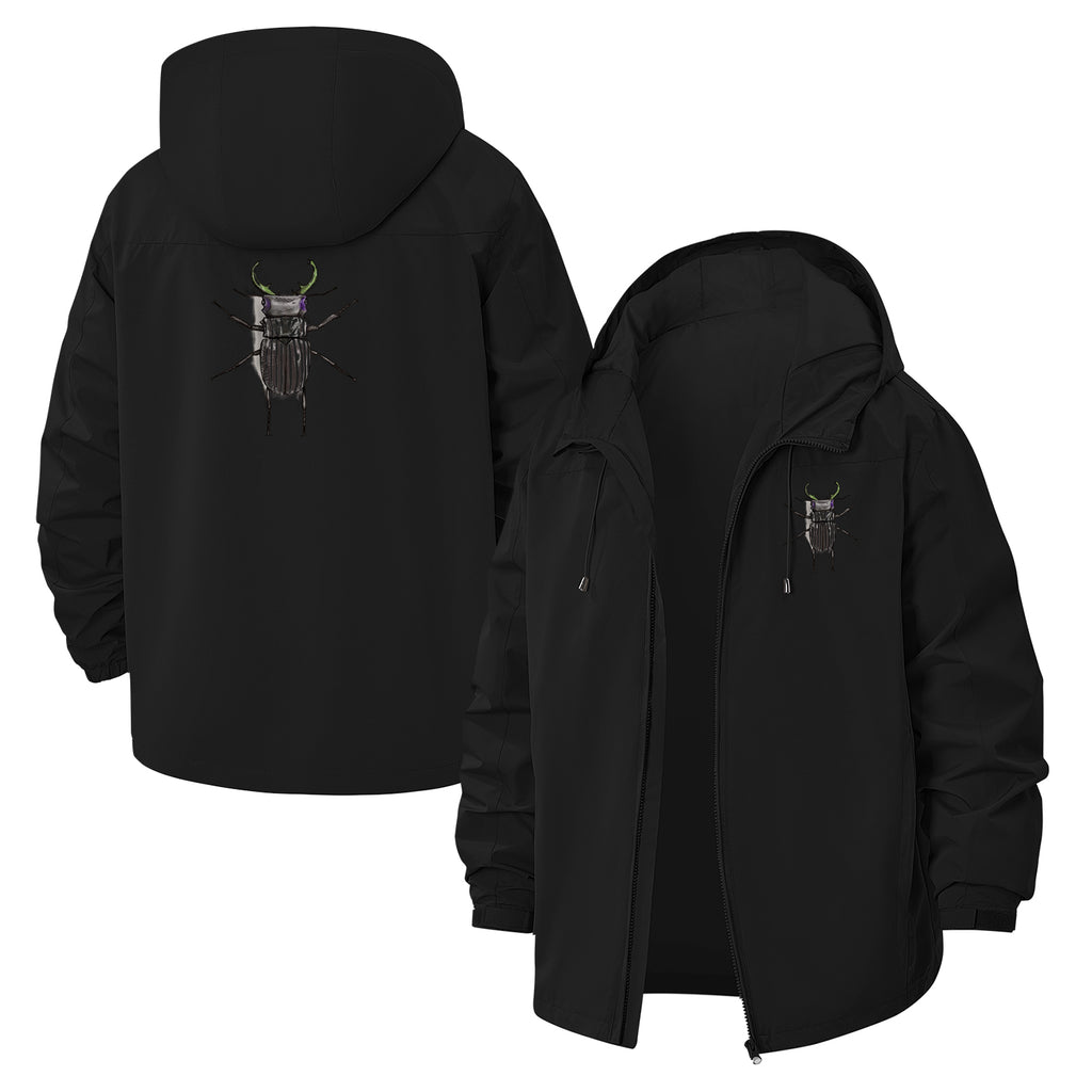 Stag Beetle Unisex Full-Zip Printed Waterproof Hooded Windbreaker