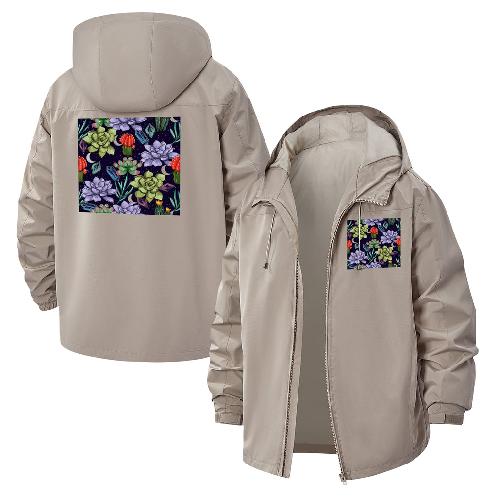 Succulent Garden Unisex Full-Zip Printed Waterproof Hooded Windbreaker