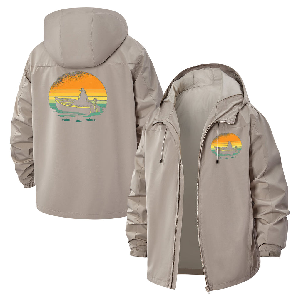 Sunset Fishing Boat Unisex Full-Zip Printed Waterproof Hooded Windbreaker