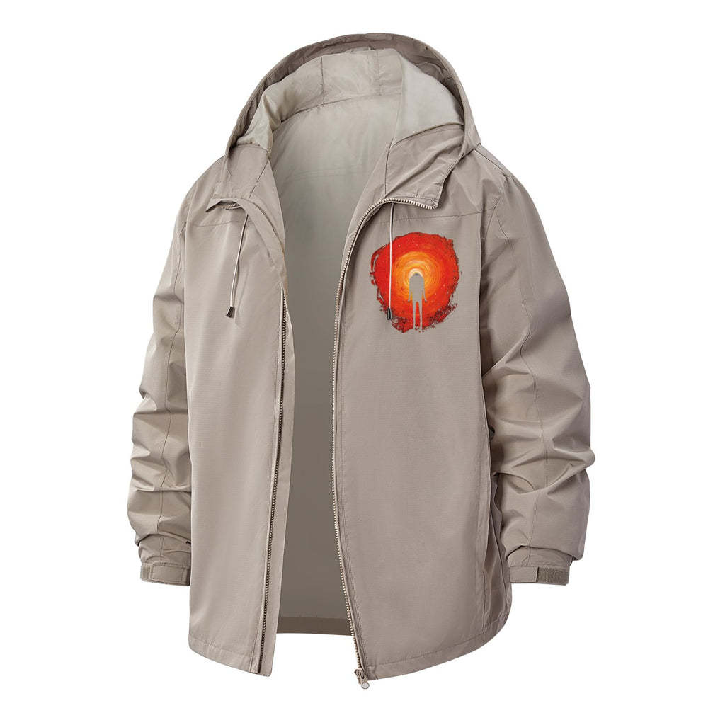 Sunset Silhouette Unisex Full-Zip Printed Waterproof Hooded Windbreaker