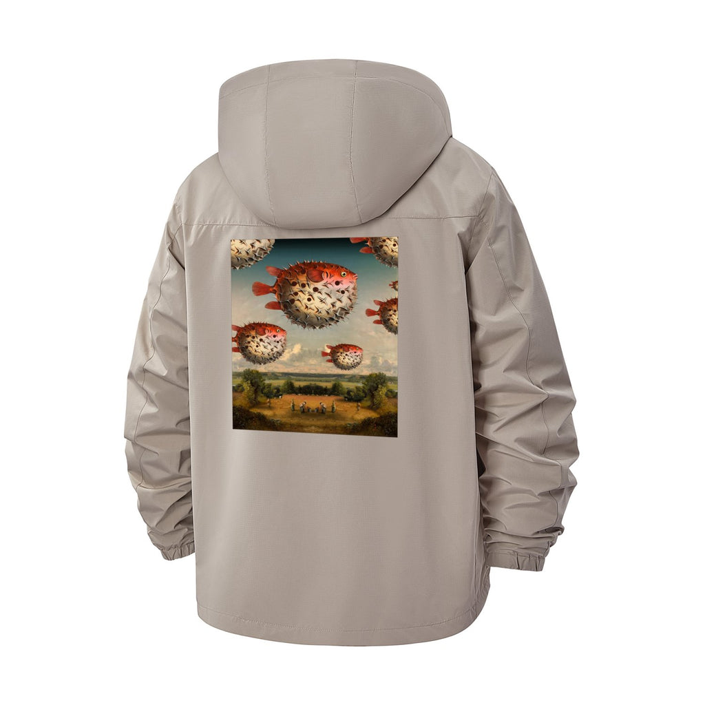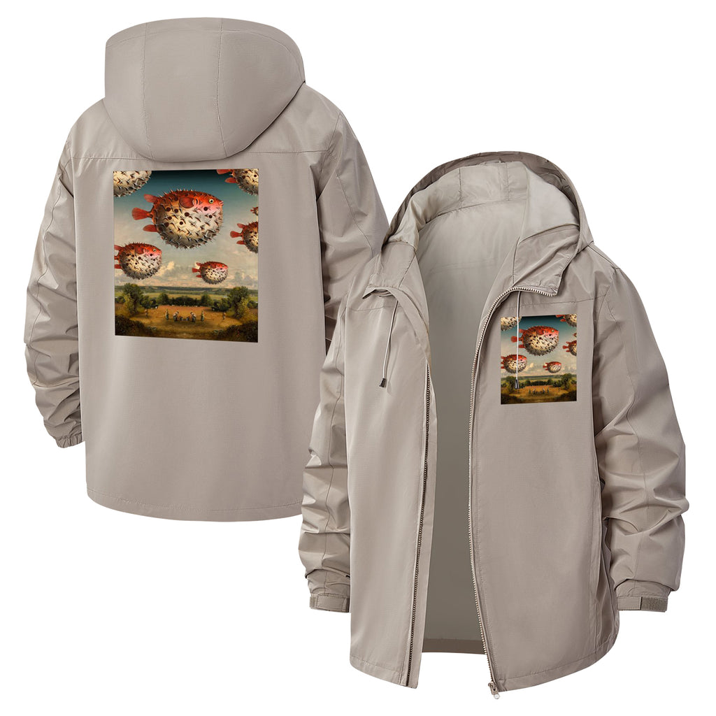 Surreal Floating Creatures Unisex Full-Zip Printed Waterproof Hooded Windbreaker