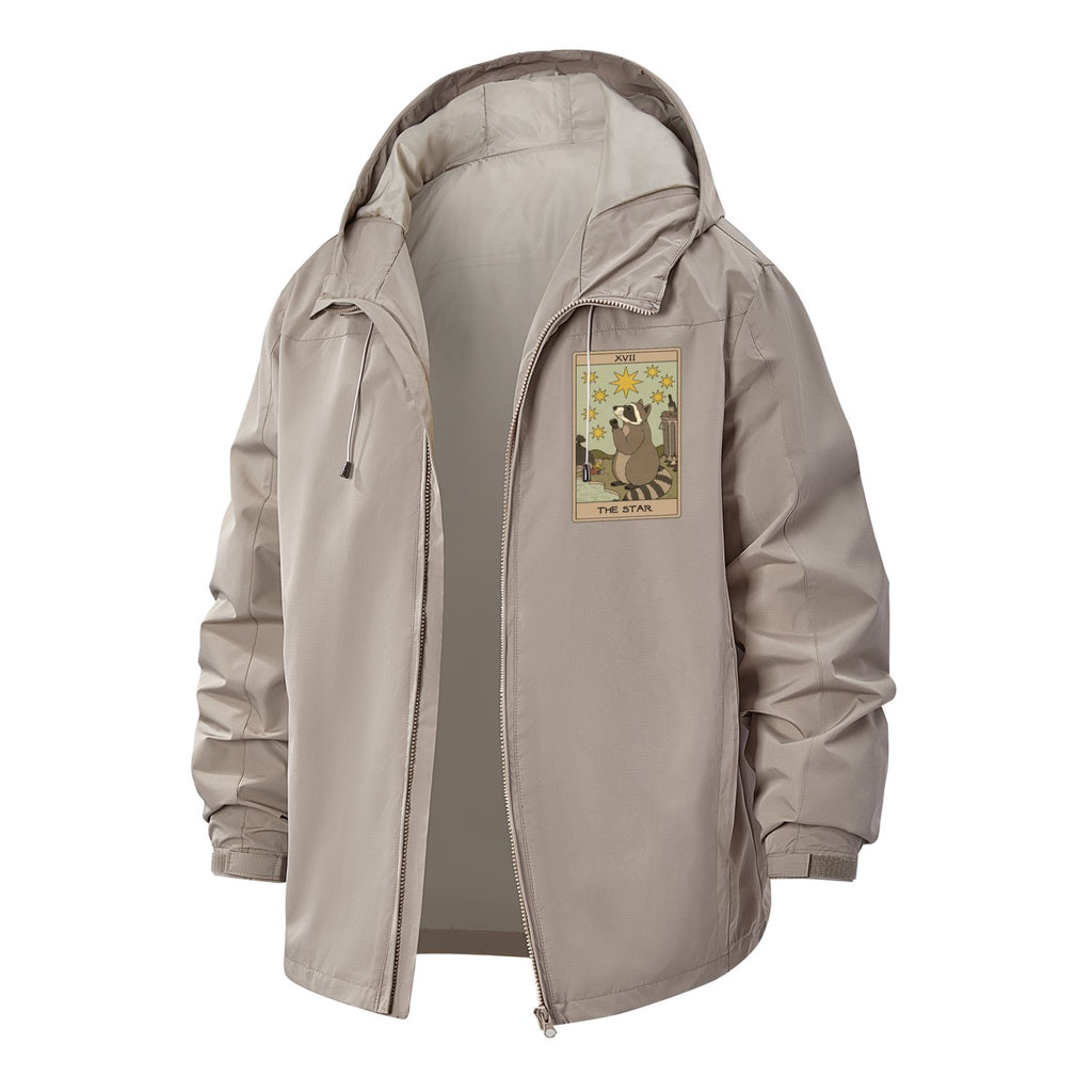 Tarot Card Raccoon Unisex Full-Zip Printed Waterproof Hooded Windbreaker