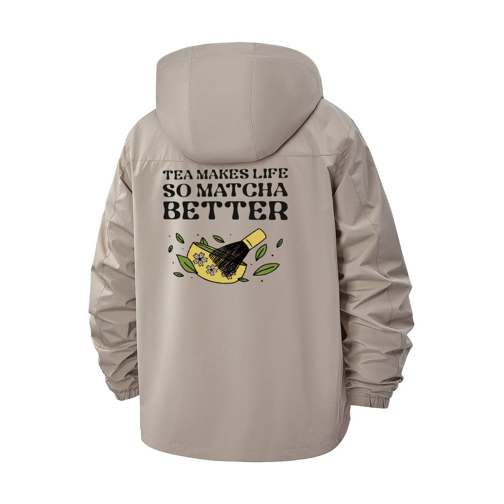 Tea Lover Unisex Full-Zip Printed Waterproof Hooded Windbreaker
