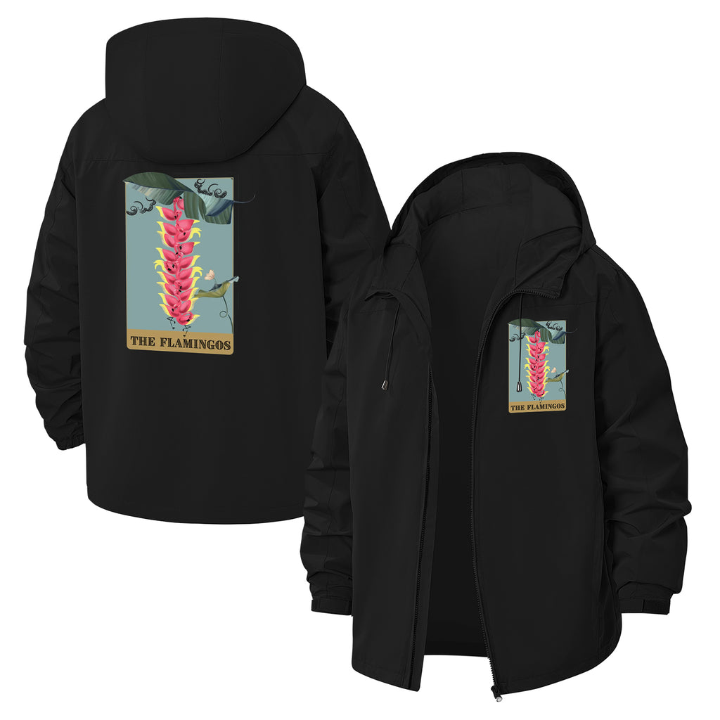 Tropical Flamingo Poster Unisex Full-Zip Printed Waterproof Hooded Windbreaker
