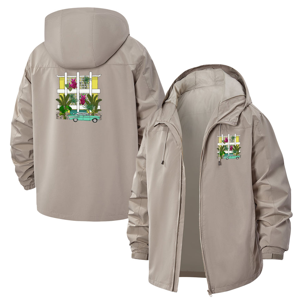 Tropical Houseplants Unisex Full-Zip Printed Waterproof Hooded Windbreaker