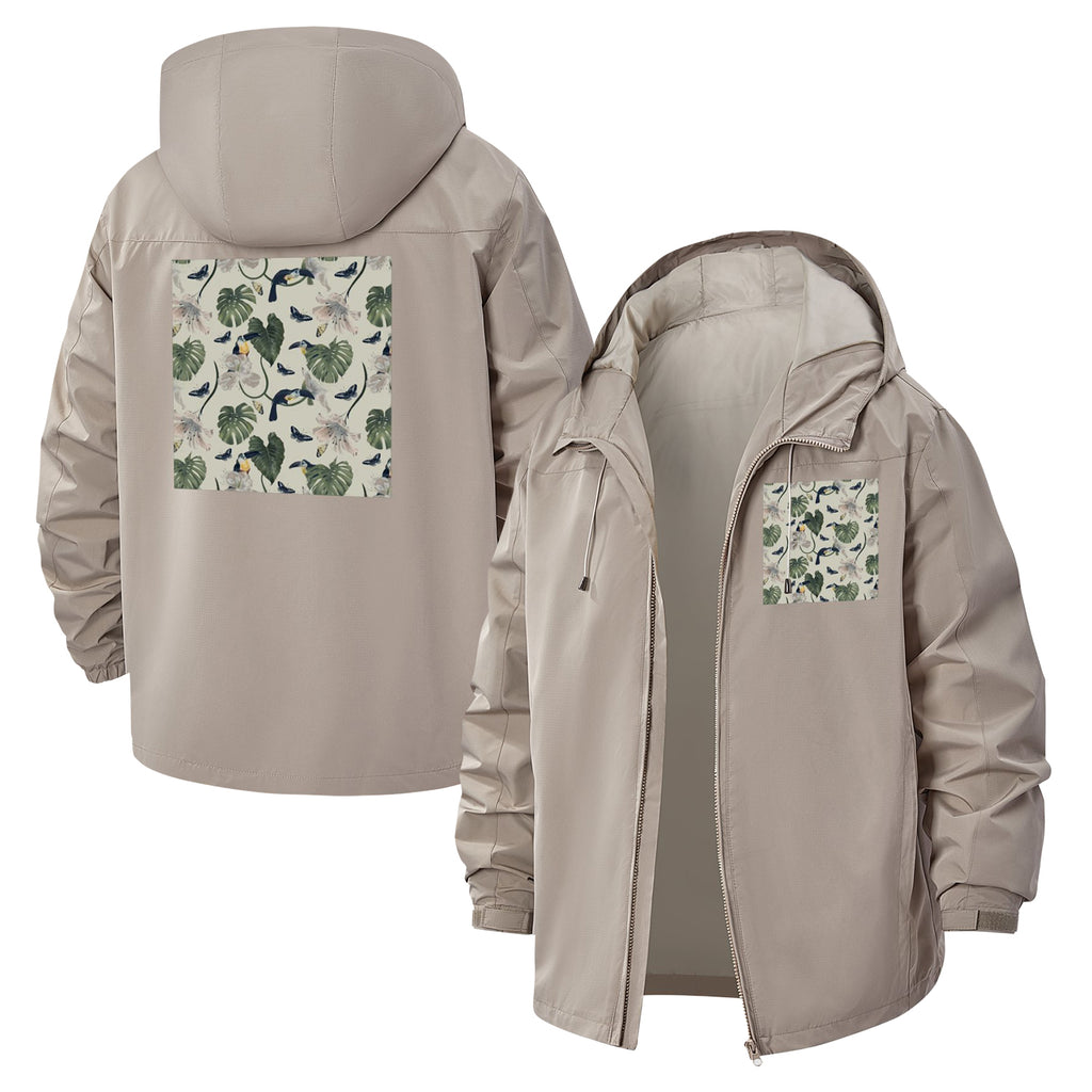 Tropical Leaves Unisex Full-Zip Printed Waterproof Hooded Windbreaker
