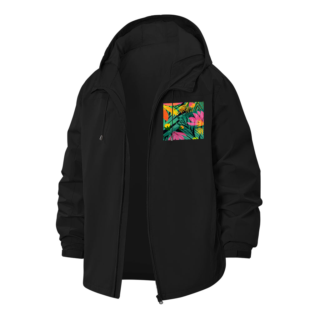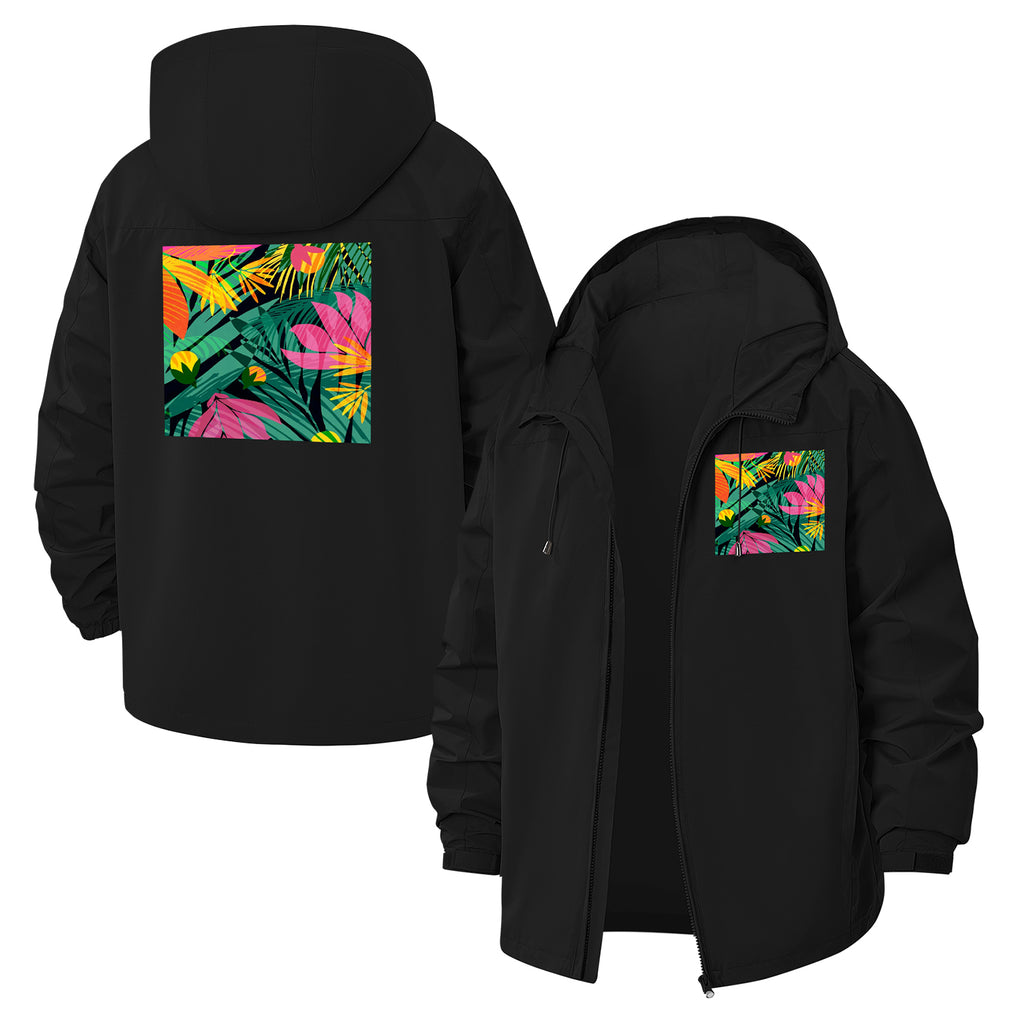 Tropical Leaves Unisex Full-Zip Printed Waterproof Hooded Windbreaker