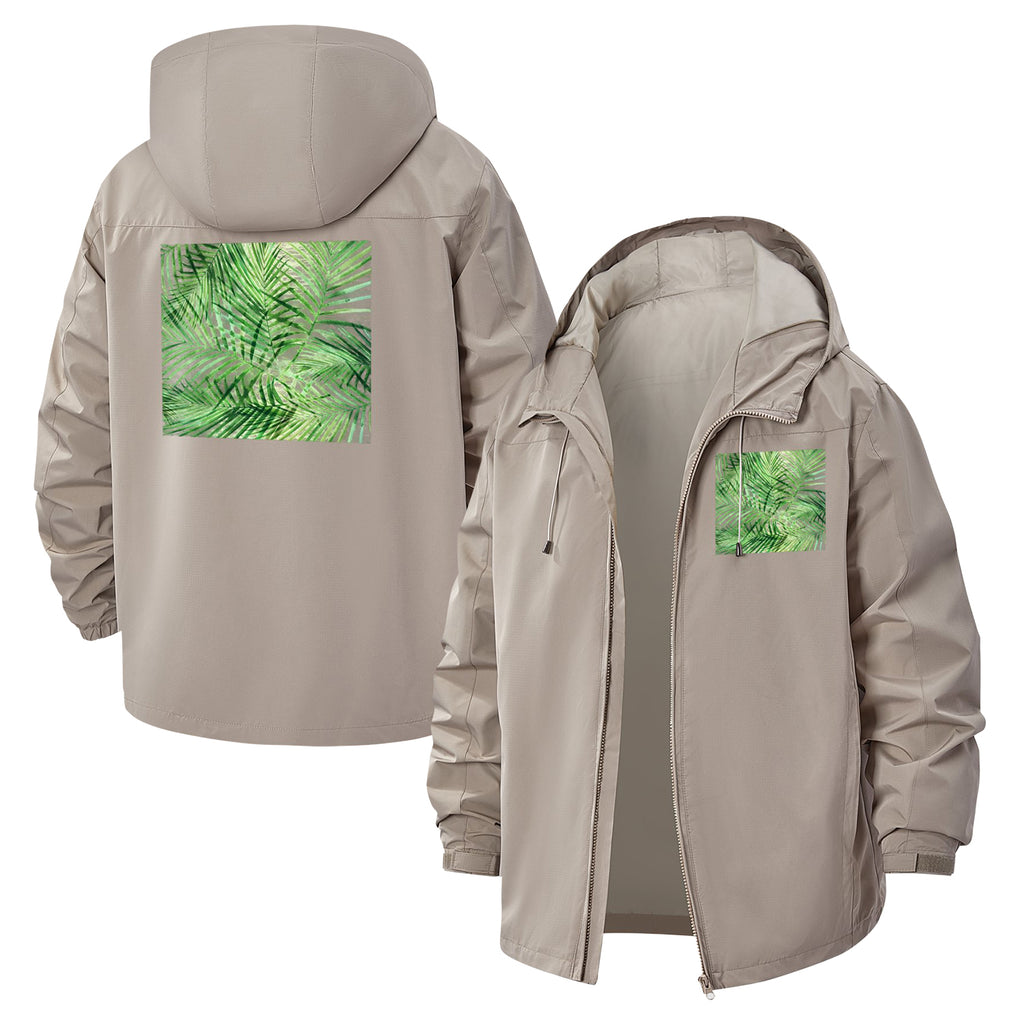 Tropical Palm Leaves Unisex Full-Zip Printed Waterproof Hooded Windbreaker