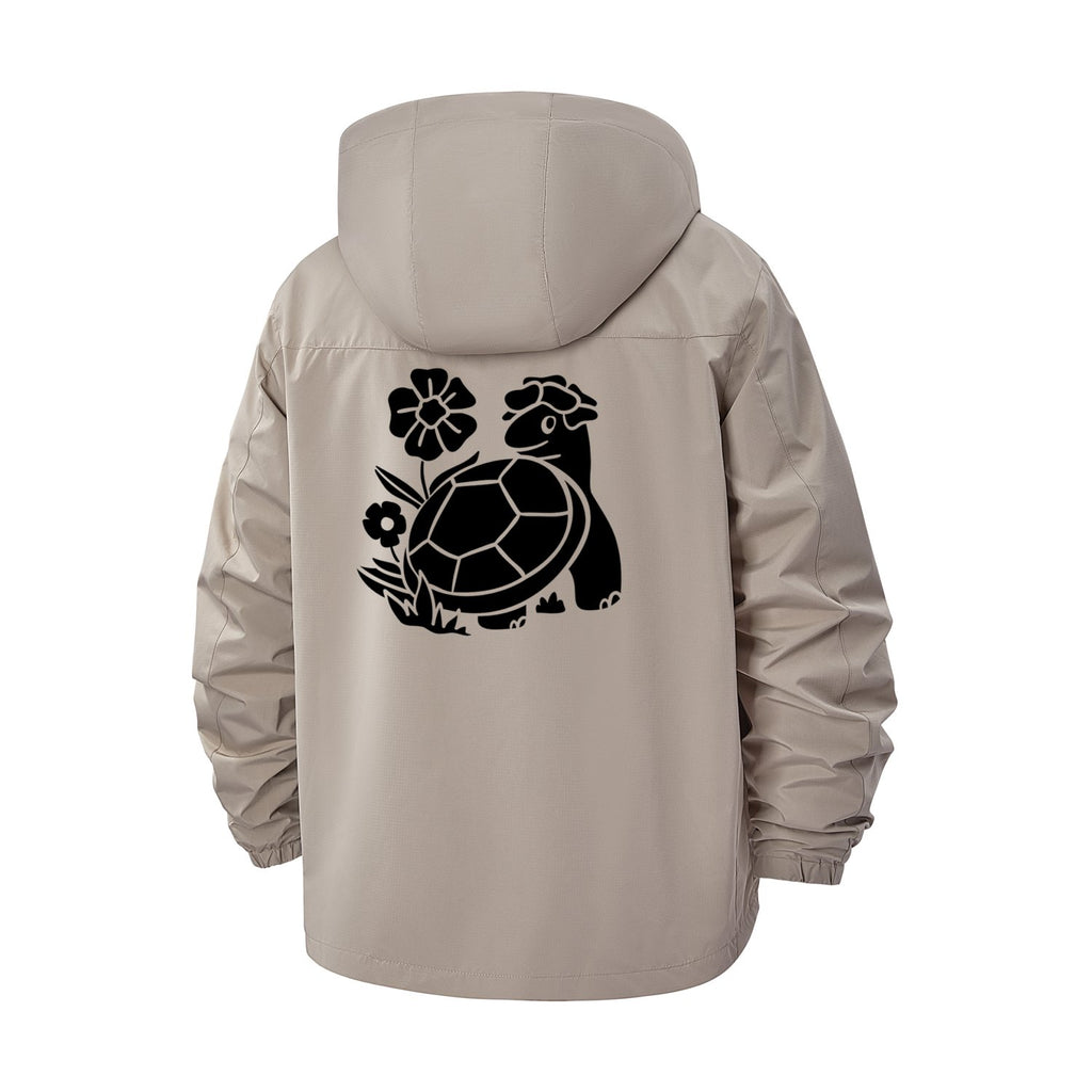 Turtle and Floral Motif Unisex Full-Zip Printed Waterproof Hooded Windbreaker