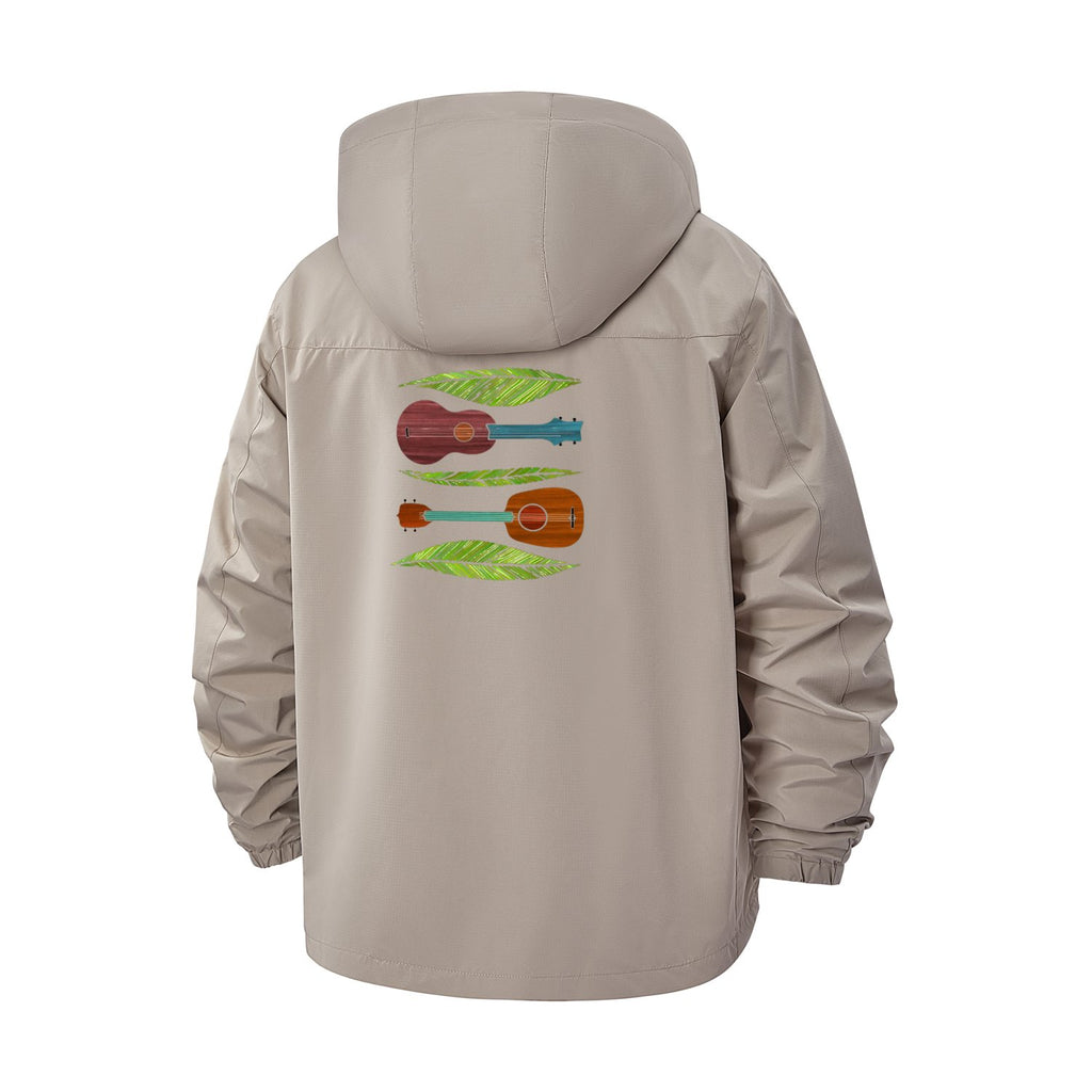 Ukulele and Leaves Unisex Full-Zip Printed Waterproof Hooded Windbreaker